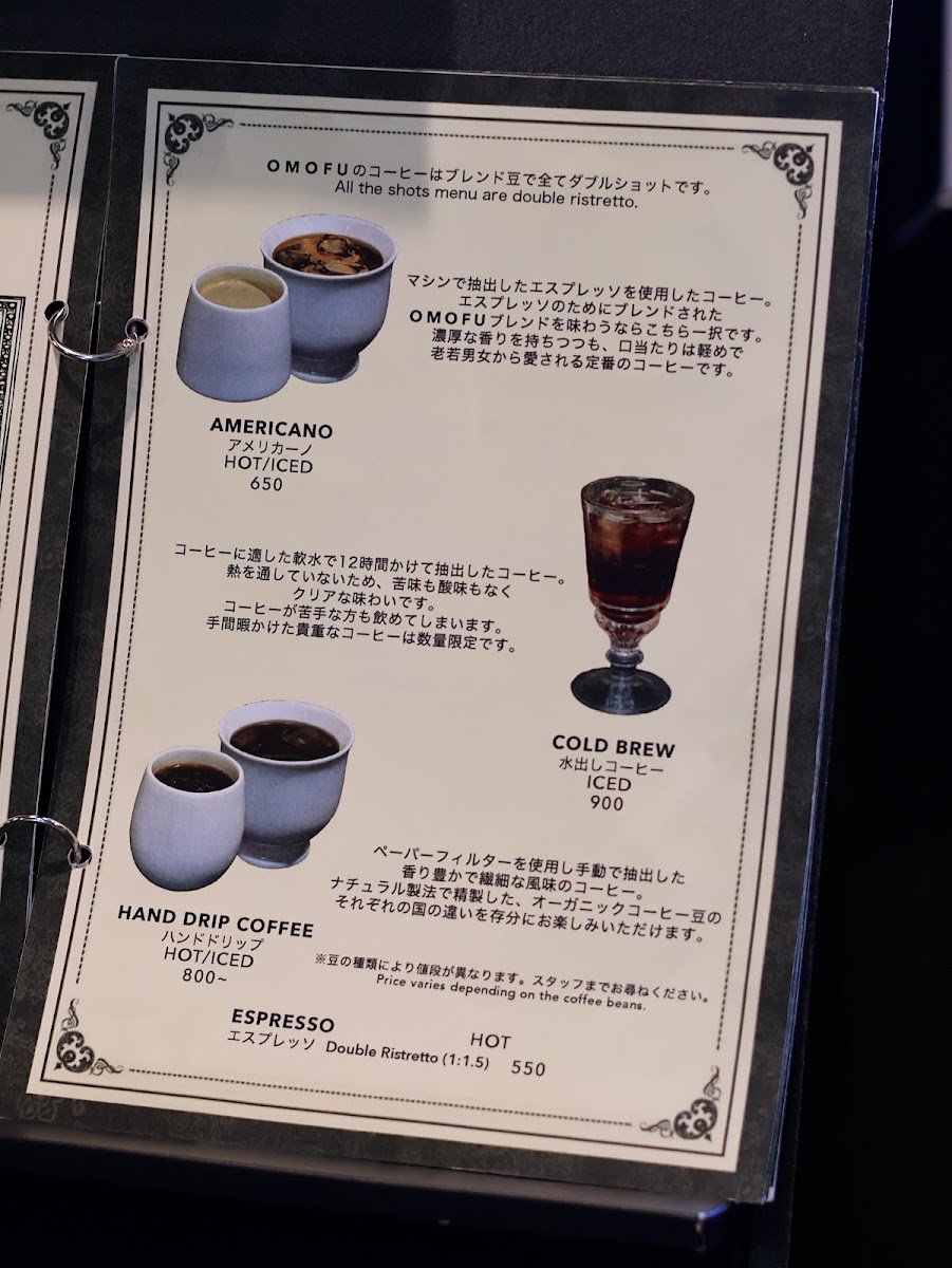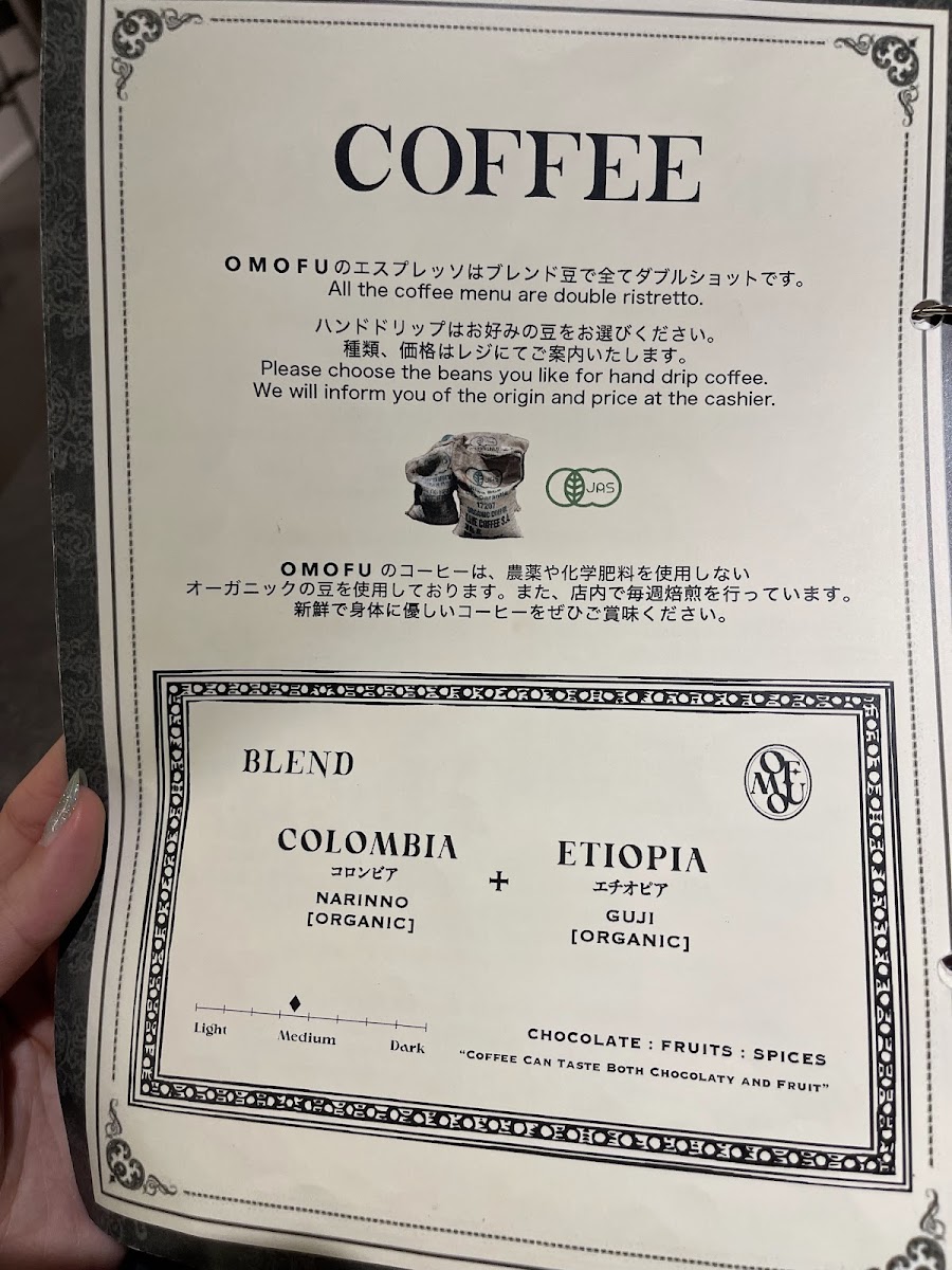 OMOFU 【Roastery cafe】 Menu